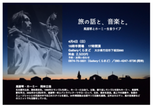 ■4月4日(日) 【時】 16時半開場 17時開演 【所】 Galleryくらまど 大分県竹田市下坂田890 【料金 】2,500円 【予約・問】 0974-70-5831(Galleryくらまど)/090− […]
